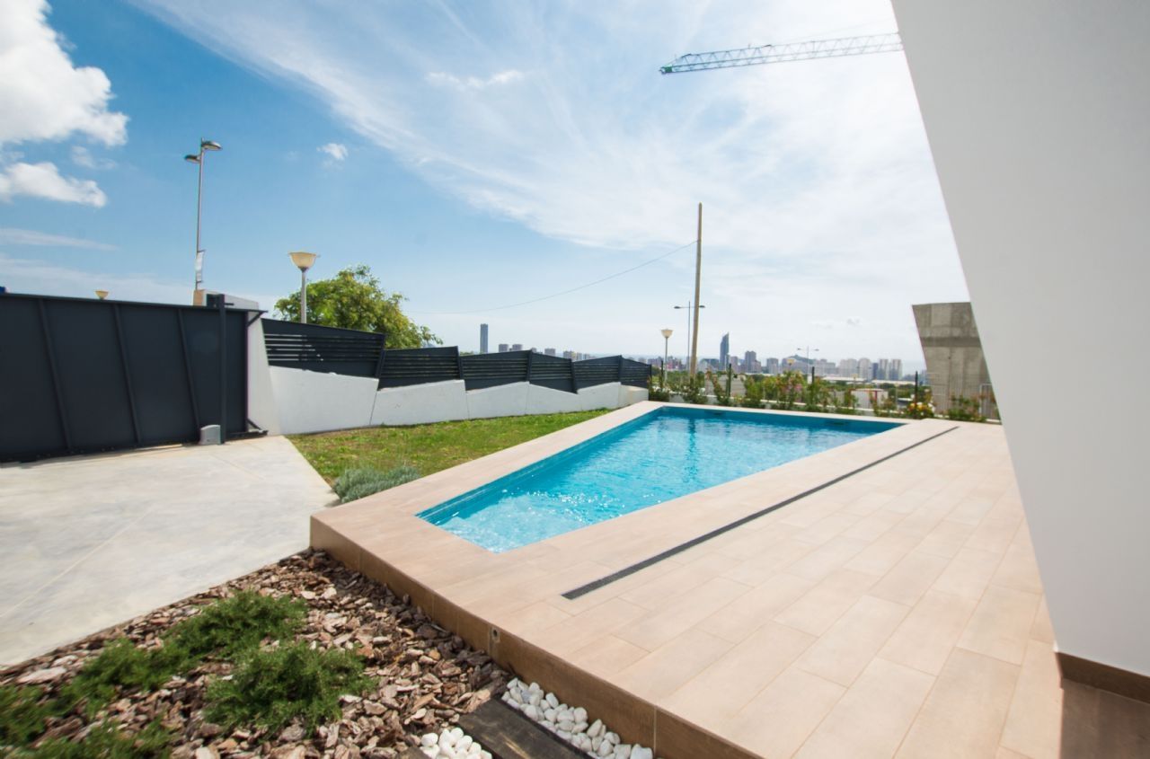 Spacious and Very luxurious villa 300 m2, in Sierra Cortina Finestrat, Costa Blanca Spain, with 3 bright and spacious bedrooms and 3 large bathrooms. Large and open living room, kitchen both with access to a fantastic private pool with spectacular views. Possibility a model with a huge basement for those looking for an even bigger house. The Skyline Residencail villas located in Sierra Cortina all have an open view of the Benidorm skyline an exceptional location thus with spectacular sunrises