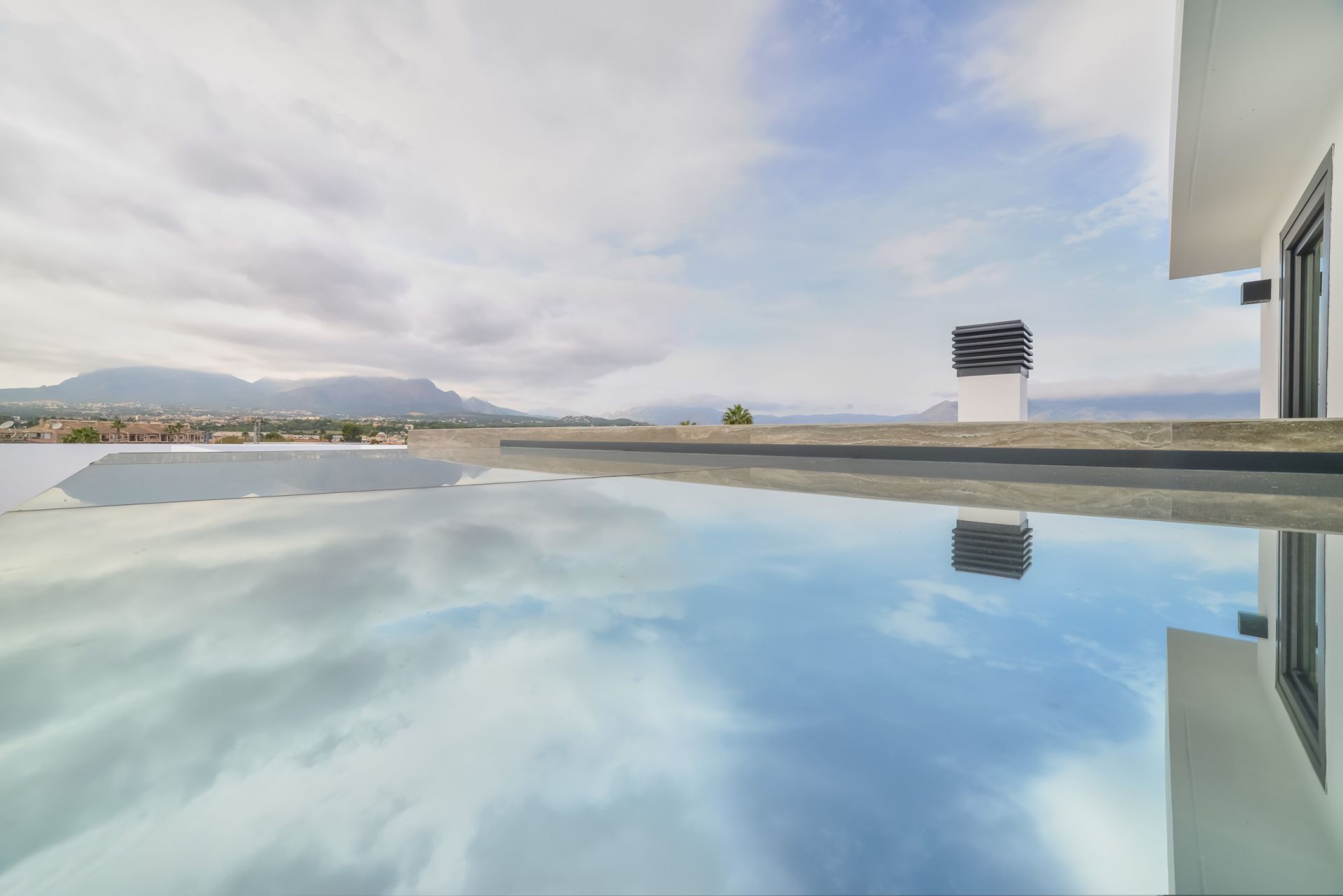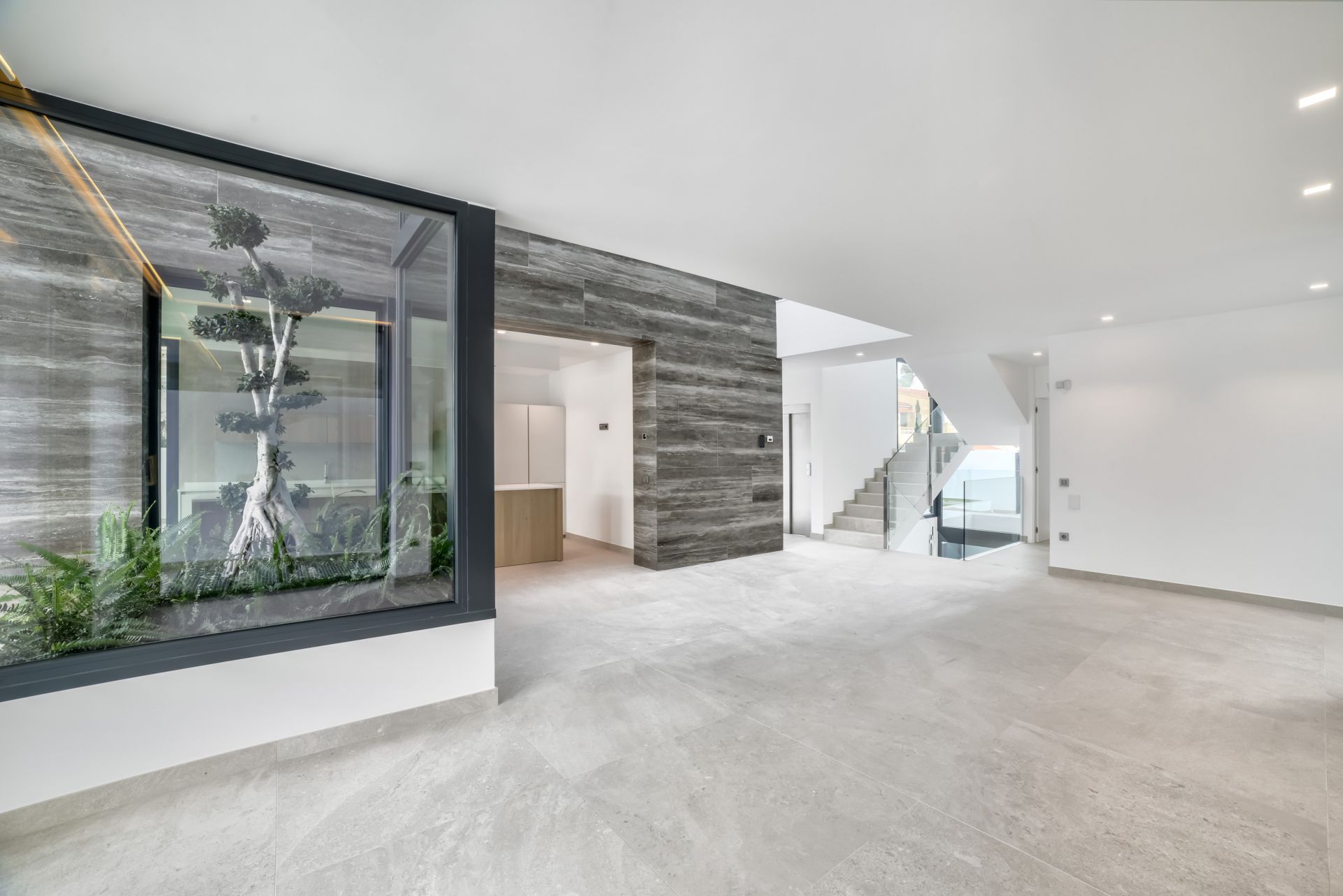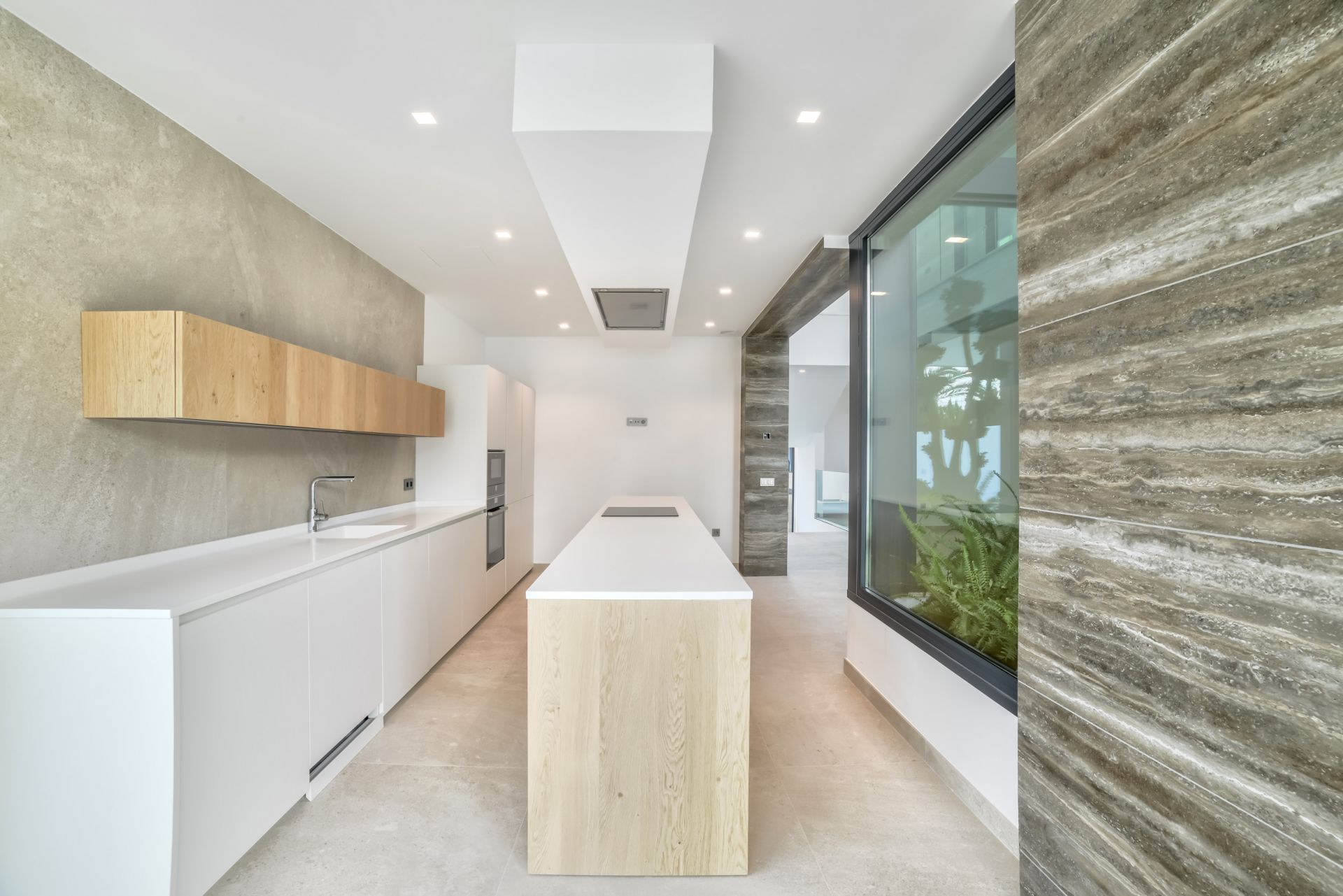 Exclusive development of 6 modernist private villas, with high standing finishes and individual pool with automatic funds cleaning. Elevator from the basement to the solarium (4 stops). Spacious plots, from the smallest 408m2 to the largest 563m2. With an area of more than 500m2 useful and spacious terraces of more than 200m2. They consist of 4 bedrooms with fitted wardrobes inside and 4 bathrooms with all the integrated equipment. 42m2 living room with double height and exterior garden patio. 23m2 kitchen equipped with high-end appliances. 34m2 master bedroom with bath and shower. Garage for two cars and parking on the surface. Thermal and acoustic insulation complying with the technical code. The houses have large windows to take advantage of all the light and offer fantastic views of the Serra Gelada and surroundings. Floor heating and A.A. through conduits.