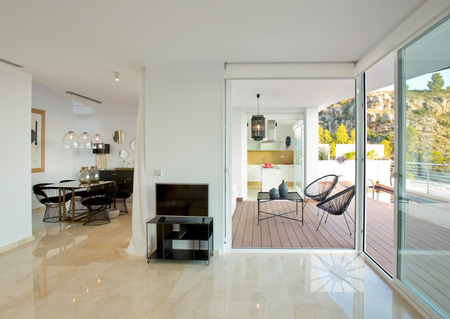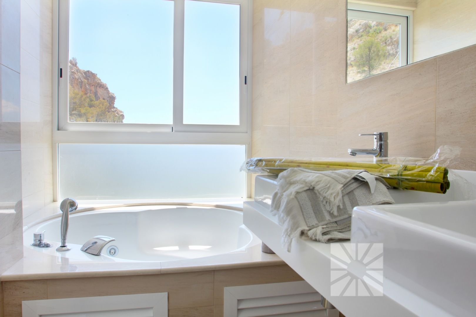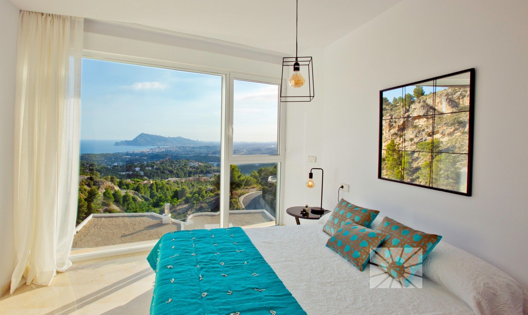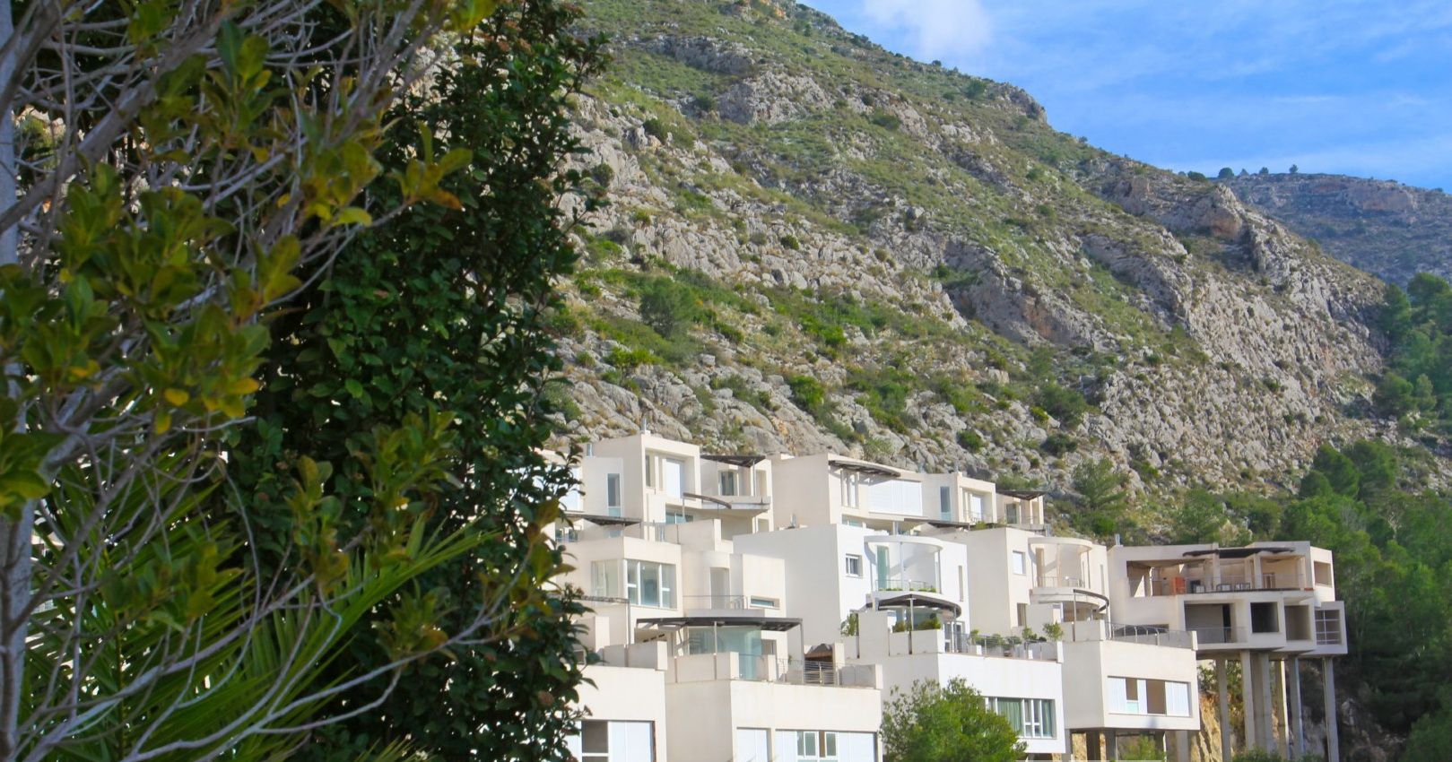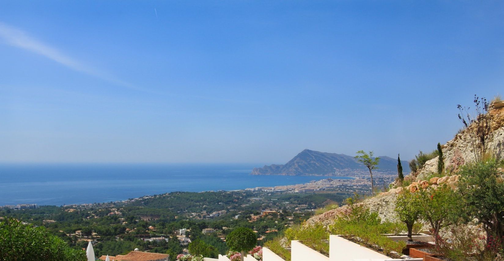A residential estate full of light, with large interior spaces, unique architecture and natural surroundings, panoramic views of the Mediterranean Sea and the skyline of Benidorm.