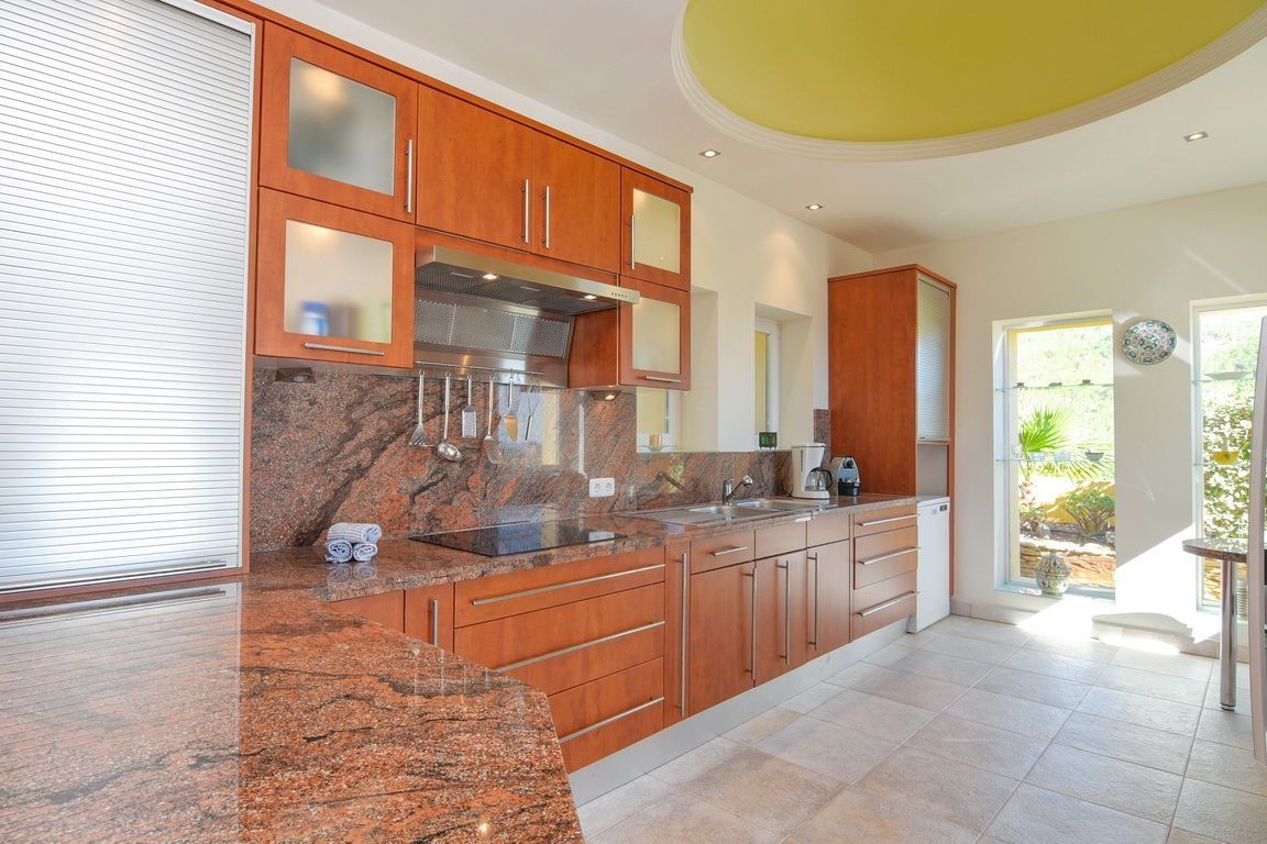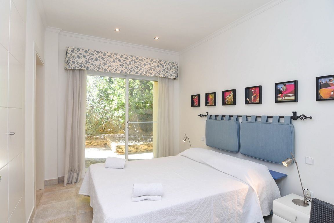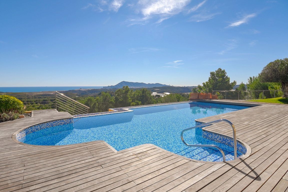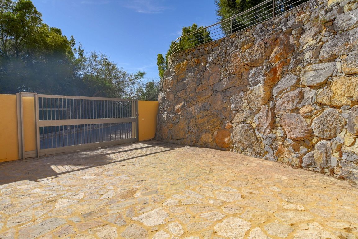 This villa of 371 sqm has a guest apartment with 3 bedrooms, 2 bathrooms, living room with open kitchen, the rest of the house has 4 bedrooms, 4 bathrooms, large living room where you can enjoy views of the garden, pool and sea, large equipped kitchen, alarm, satellite, etc.. The garden has several seating areas, barbecue area, private pool, parking spaces, garage, quiet area and 15 minutes from the beach.