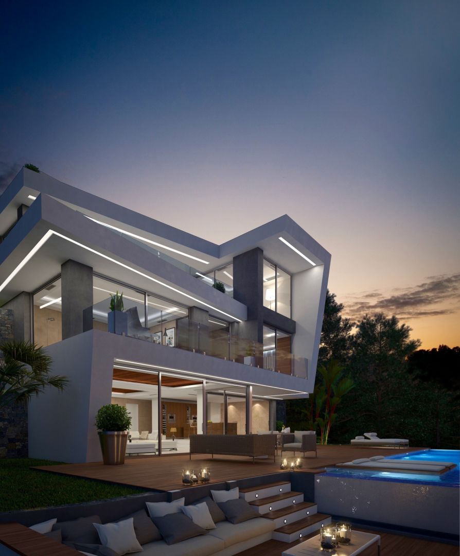 Amazing and modern villa distributed over 4 levels with the entrance on the ground floor leading to a hallway with double height ceiling and with access to all floors. Garage for 2 cars and stairs and lift to the lounge. Large windows in the lounge with wonderful sea and countryside views.