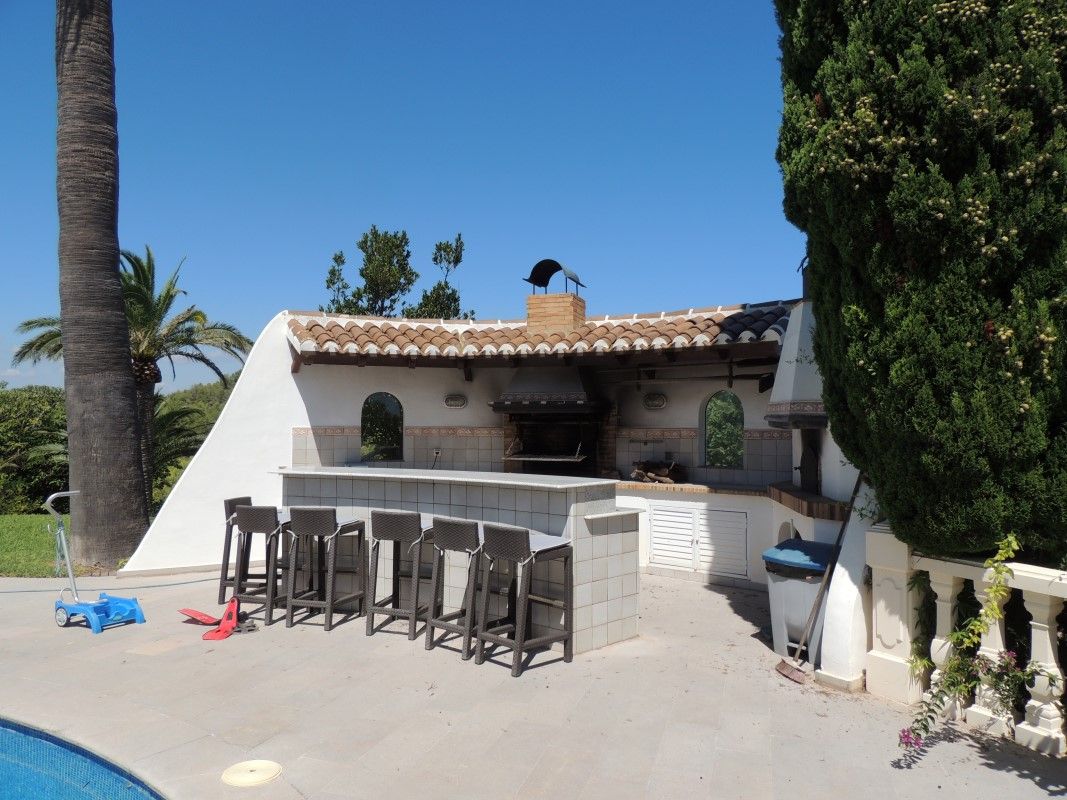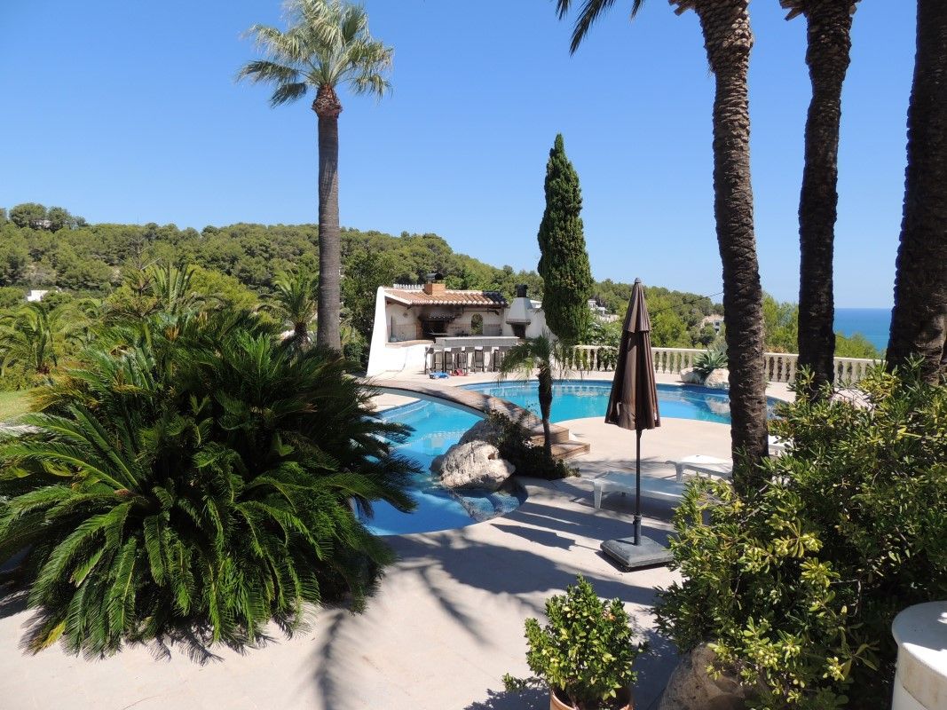 One of the most beautiful Villa for sale in Javea. Located in Portichol with amazing sea view. Fenced plot of 4912 m2 which included a professional dimension tennis court and a free form private pool. The villa has been built at high quality materials and it's in immaculated condition. Distributed over 3 levels with separate accommodation for guests. Total of 9 Bedrooms (6 with en suite bathroom), 2 fully equipped kitchens, dining room, lounge room with bar, laudry room, game room, bodega. Lovely garden with irrigation system, lush garden with different type of Palm trees. Big Garage. Professional tennis court. Included in this price 5 plots (3 in front the villa, 2 behind), please contact us for more information. This villa should be seen to appreciate the beauty.