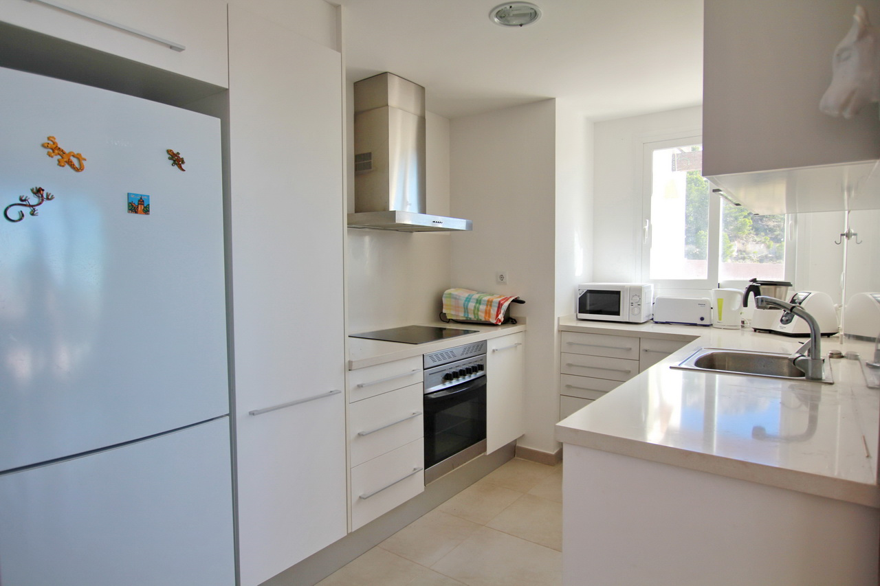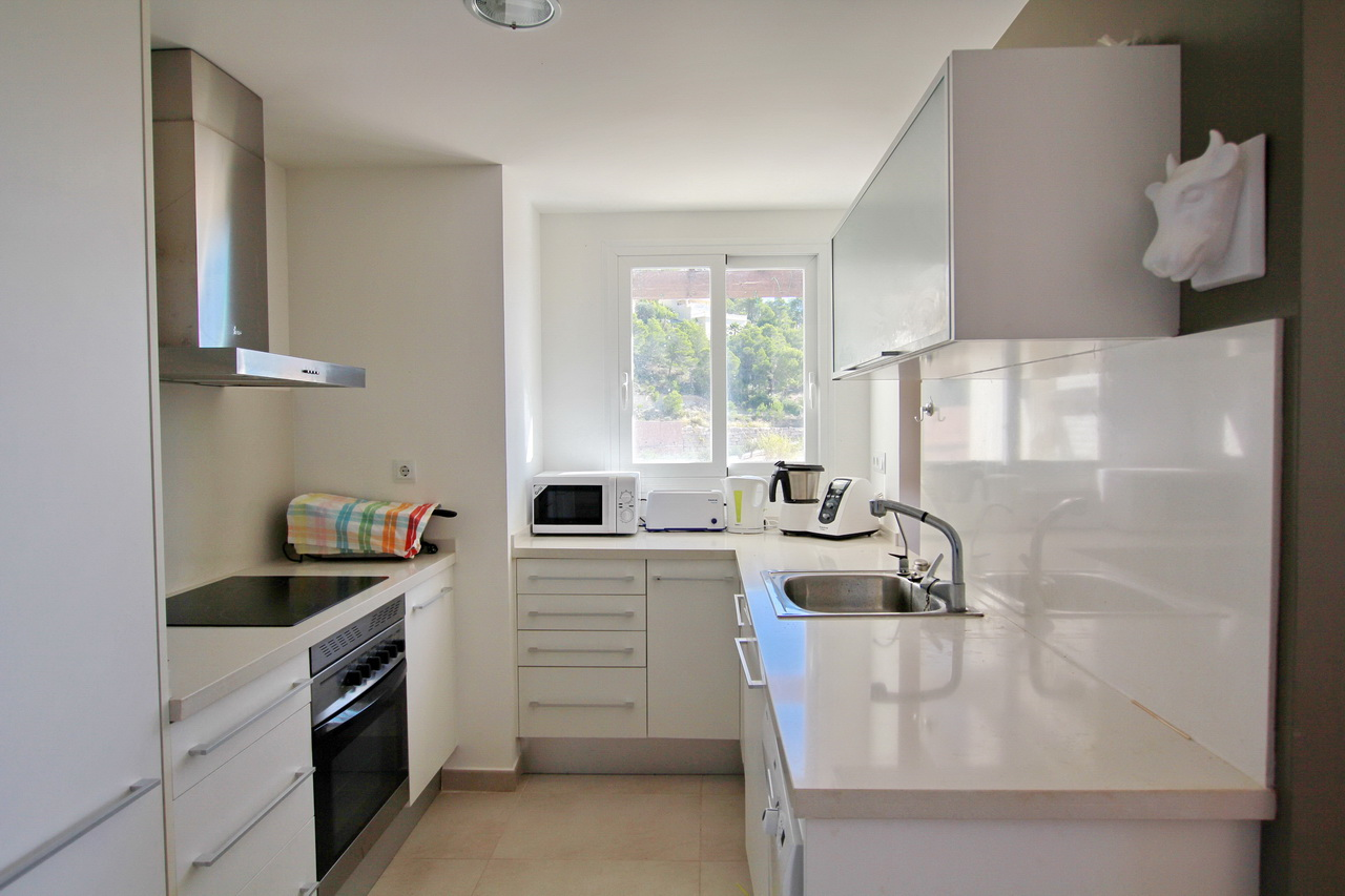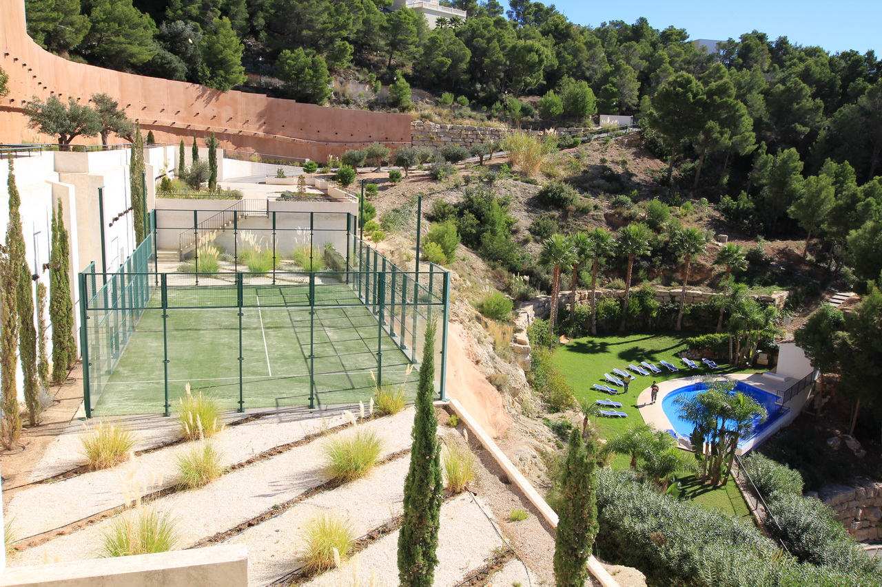 Apartment for sale with stunning panoramic sea views in a luxury residential complex of Los Lirios I in Altea Hills (Altea, Alicante). It includes 3 bedrooms, 2 bathrooms, a living/dining room, a fully equipped open plan kitchen, a laundry room, and a large terrace with panoramic views over the sea and the forest. The residential complex has two swimming pools, paddle court, childrens’ playground area, guest parking and caretaker. Make this apartment your new holiday residence and enjoy the highest quality of life. An excellent investment!