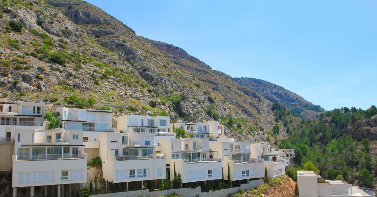 A residential estate full of light, with large interior spaces, unique architecture and natural surroundings, panoramic views of the Mediterranean Sea and the skyline of Benidorm.